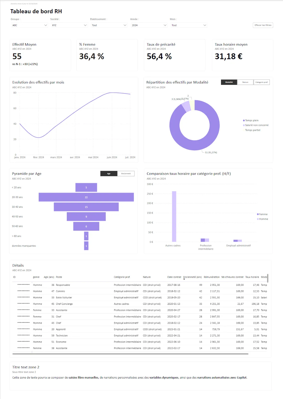 - Power BI : Outil de BI phare de Microsoft, Power BI se distingue par sa capacité à créer des reportings visuels, dynamiques et interactifs. Il aide les dirigeants et les managers à prendre des décisions rapidement, grâce à des dashboards et des analyses en temps réel. Power BI, intégré à MS Fabric, amplifie l'accessibilité et l'interactivité des données.